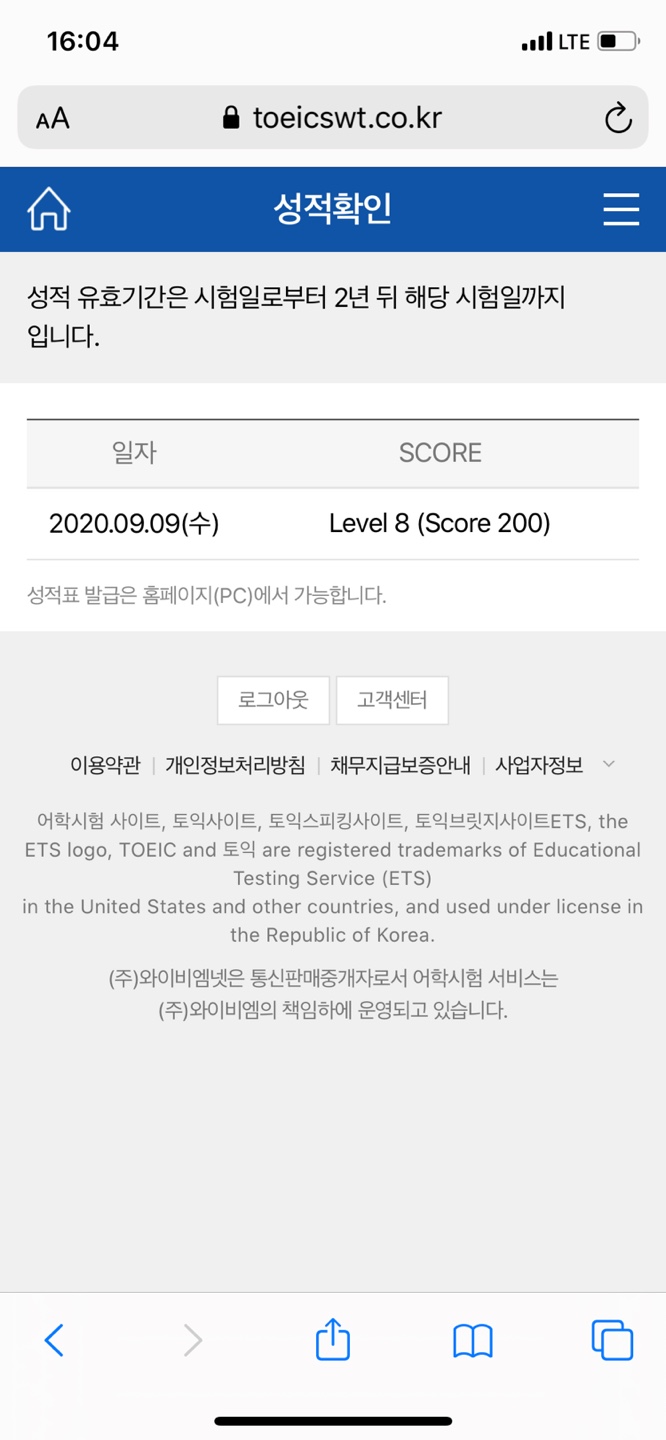 이로써 만점 성적표가 하나 더 늘었습니다.(토익만점 / 토스만점 두개)